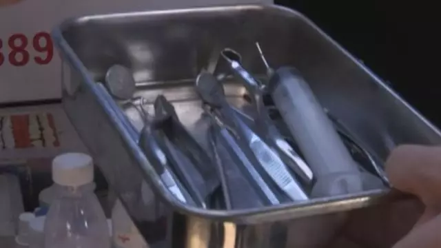 車(chē)內(nèi)用于給人看牙的牙鉗和其它設(shè)備