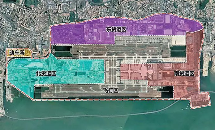主要包括東貨運(yùn)區(qū)、南貨運(yùn)區(qū)、北貨運(yùn)區(qū)以及機(jī)場(chǎng)東動(dòng)車所等四個(gè)功能分區(qū)。