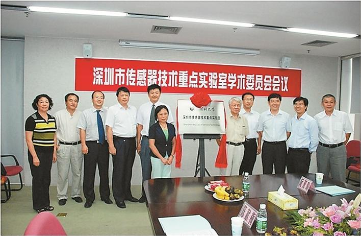 ▲李學(xué)金(左五)參加深圳市傳感器重點實驗室揭牌成立儀式。
