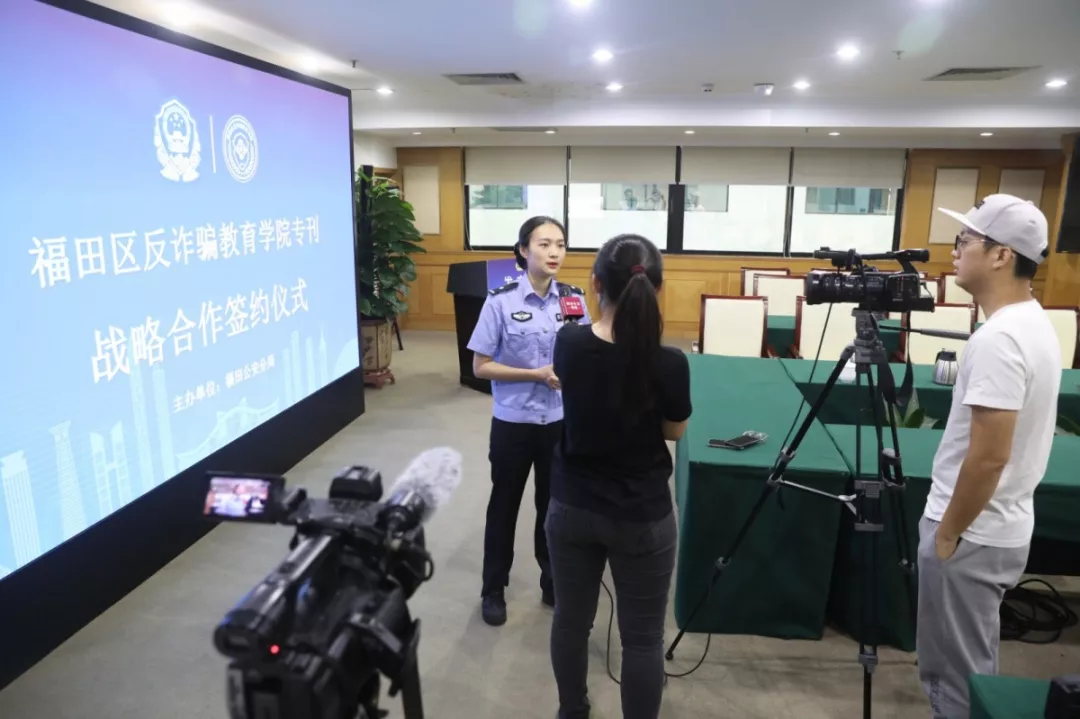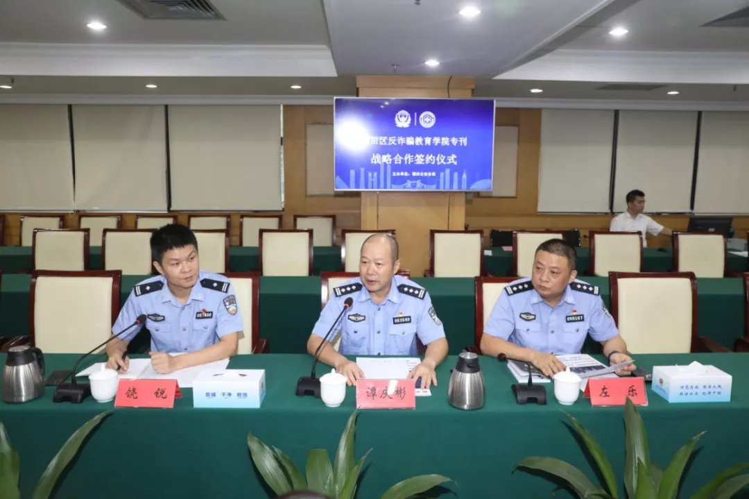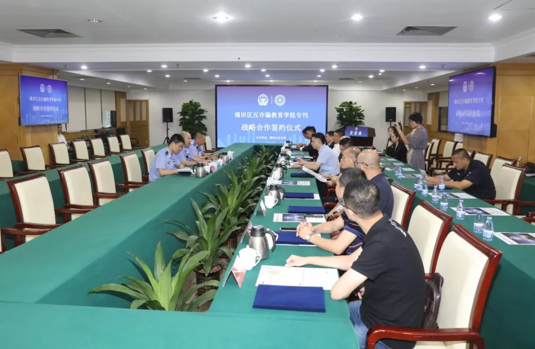 活動現(xiàn)場,福田分局分別與福田區(qū)委政法委、蓮花街道辦、北大深圳醫(yī)院、深圳外國語學校、中國郵政儲蓄銀行、聯(lián)想有限公司(深圳)、平安大廈物業(yè)、馬成時代廣場、卓越世紀廣場、山姆會員店、梅林農批市場、順豐快遞共12家單位和企業(yè)簽訂了《福田反詐騙教育學院專刊戰(zhàn)略合作協(xié)議》。
