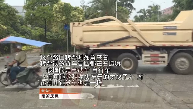 電動車就正處于泥頭車盲區(qū)