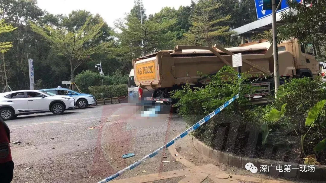 一輛滿載泥土的泥頭車與兩輪電動車相撞