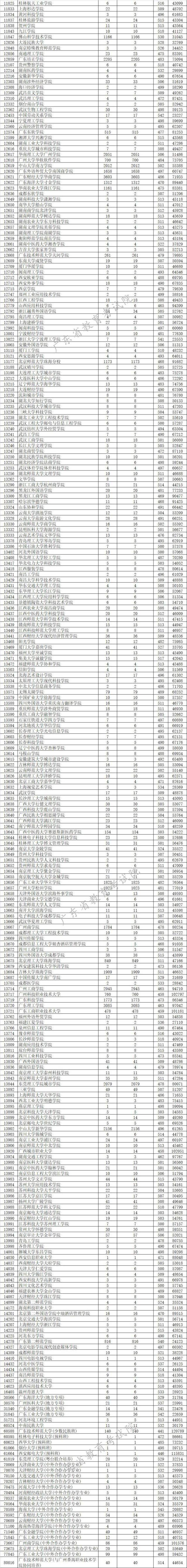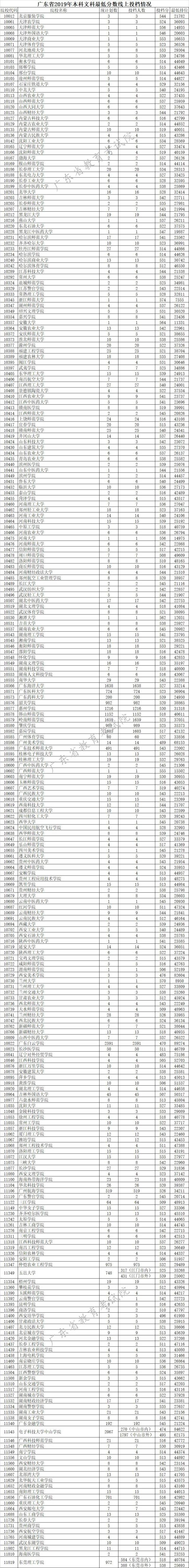 廣東省2019年本科文科最低分數線上投檔情況