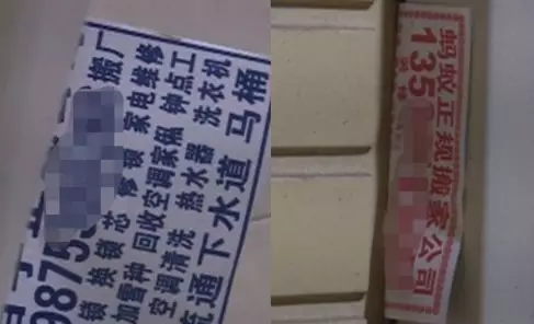 搬家、疏通下水道、空調維修,等等的廣告種類繁多。而且這貼廣告的人,是真舍得用膠水,一旦小廣告上了墻和門,你不花個大力氣,根本搞不定它。