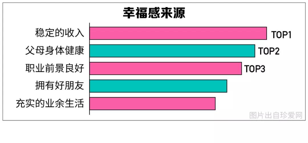 深入研究發(fā)現(xiàn),男性對“擁有心儀對象”的需求比例(6.67%)略高于女性(3.17%),女性則是在擁有要好朋友的比例(28.79%)上高于男性(6.67%),且因為穩(wěn)定收入感到幸福的女性比例(60%)比男性(53%)更高。可見,女性更容易從穩(wěn)定的收入中獲得幸福感。