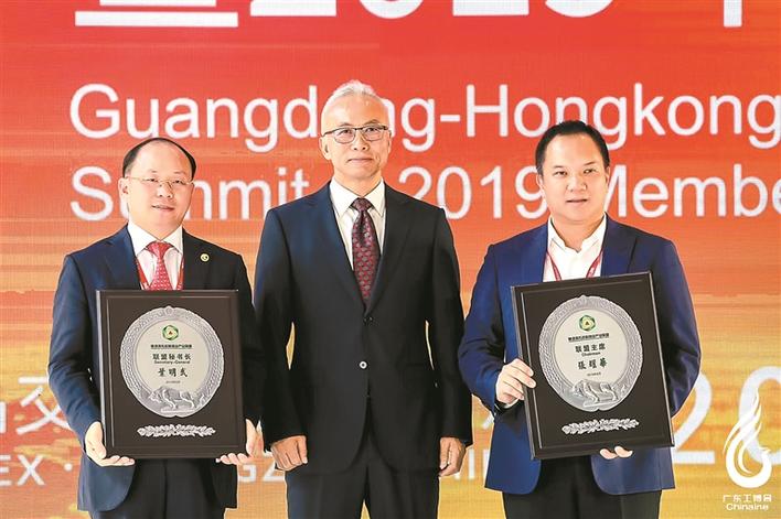 ▲2019年8月8日,中國國際貿(mào)易促進(jìn)委員會(huì)機(jī)械行業(yè)分會(huì)會(huì)長孫喜田(中)向張耀華(右一)授予粵港澳先進(jìn)制造業(yè)產(chǎn)業(yè)聯(lián)盟主席牌匾。