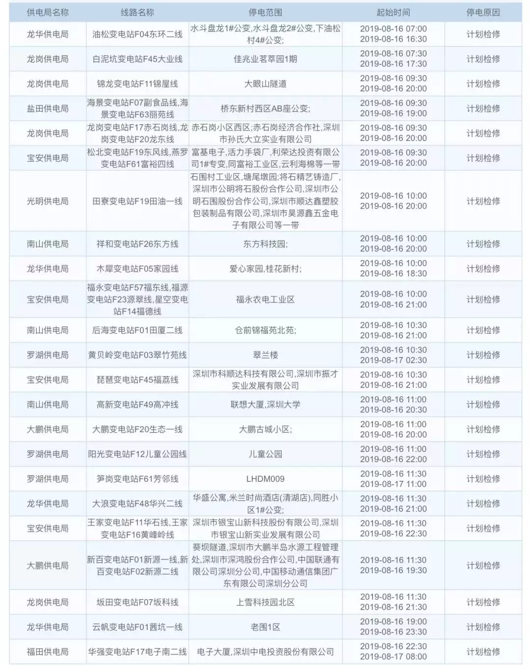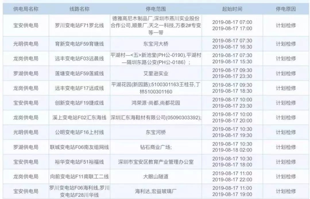 據(jù)中國南方電網(wǎng)信息,接下來這幾天深圳這些地方計(jì)劃停電,快看看有沒有你們家。