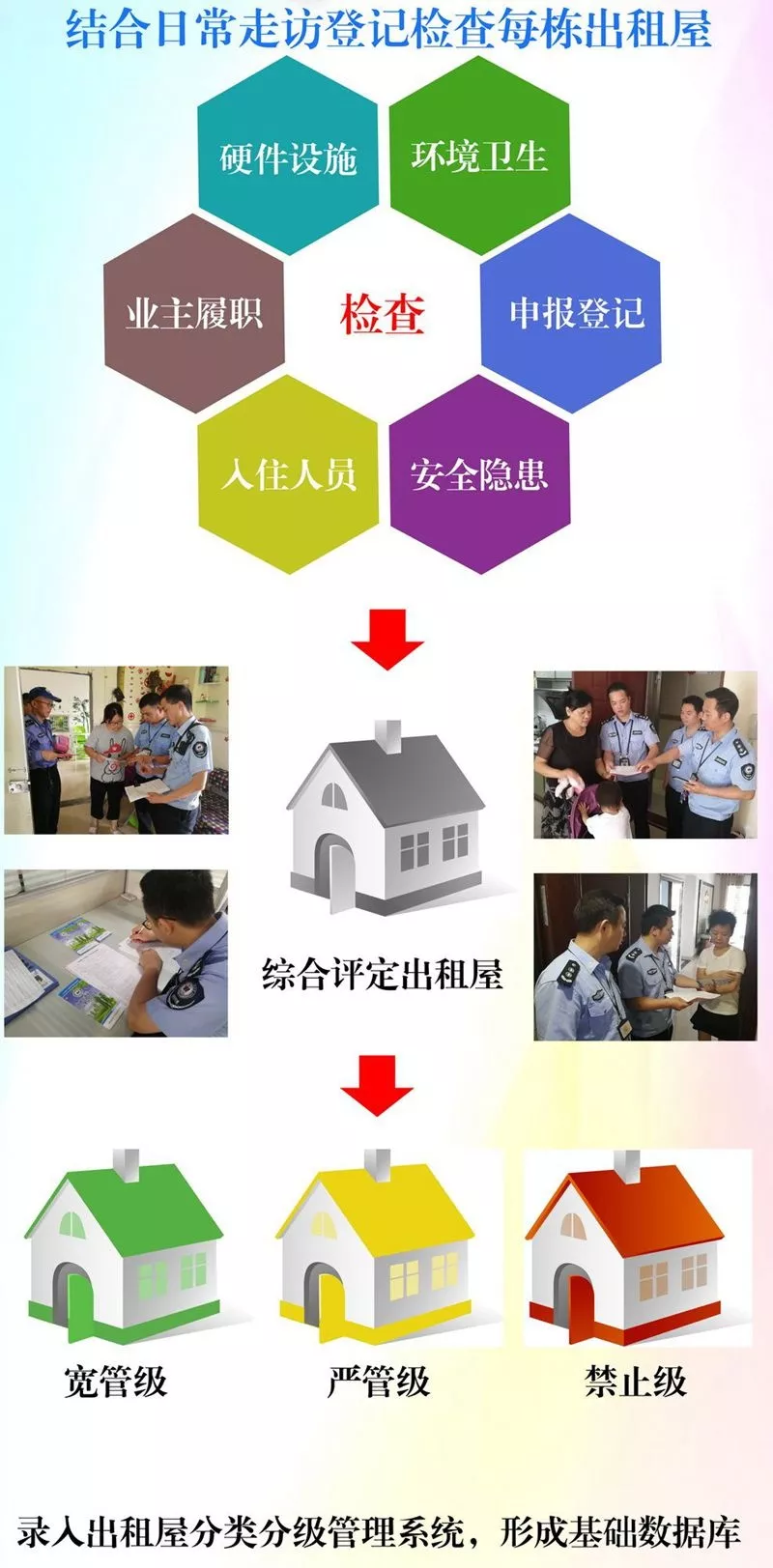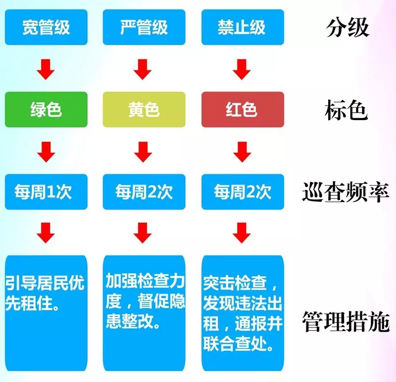 各街道在本轄區(qū)內(nèi)全面落實出租屋分類分級管理,區(qū)工作領(lǐng)導小組在各街道完成后開展全面驗收。
