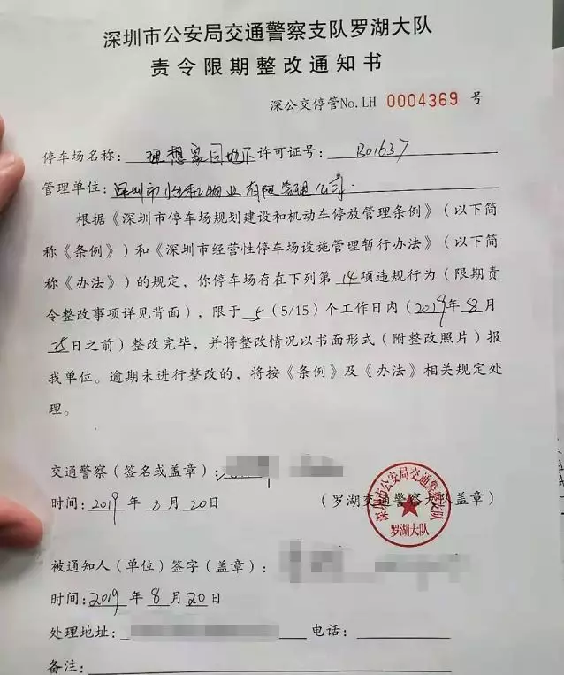 深圳交警巡查至深圳市怡和物業(yè)有限管理公司理想家園地下停車場(chǎng)時(shí),發(fā)現(xiàn)該停車場(chǎng)數(shù)據(jù)未與停車場(chǎng)監(jiān)管系統(tǒng)正常連接,民警按照停車場(chǎng)管理制度向該停車場(chǎng)負(fù)責(zé)人開具責(zé)令限期整改通知書。