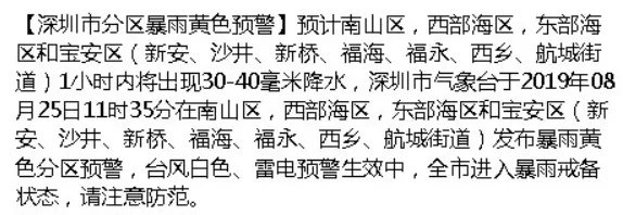 目前,深圳市已發(fā)布分區(qū)暴雨黃色預(yù)警!