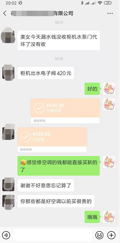 藍(lán)先生的妹妹在58同城小助手,找到了深圳市易臣國(guó)際貨運(yùn)代理有限公司,并預(yù)約了上門清洗空調(diào)的服務(wù)。當(dāng)師傅上門以后,除了清洗外,還說(shuō)空調(diào)存在多個(gè)問(wèn)題,如需要加雪種(學(xué)名“氟利昂”)、線路老化、空調(diào)漏水等,6臺(tái)空調(diào)整體清洗加修理下來(lái),藍(lán)小姐當(dāng)天共花費(fèi)6618元。