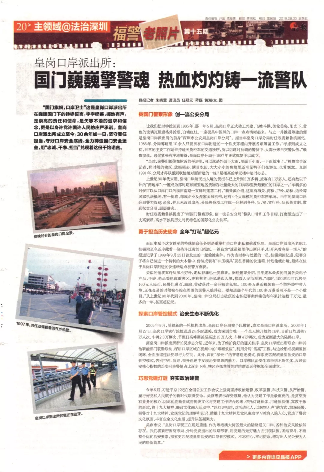 而歷史賦予這支鐵軍的特殊使命任務(wù)則是重拳打擊口岸走私和偷渡犯罪。皇崗口岸派出所老職工桂錫梁至今還珍藏著一份些許泛黃的舊報(bào)紙,一篇名為“速遞箱里伸出兩只手,打開來看竟是一活人”的報(bào)道記錄了1999年9月22日曾發(fā)生的一起偷渡案件。作為當(dāng)時(shí)參與處置的一員,桂錫梁回憶道,犯罪分子將自己裝進(jìn)一個(gè)特制的大木箱中,偽裝成裝有“沖壓模具”發(fā)往香港的快遞箱,計(jì)劃偷渡出境,最終在位于皇崗口岸附近的快遞轉(zhuǎn)運(yùn)點(diǎn)被警方查獲。