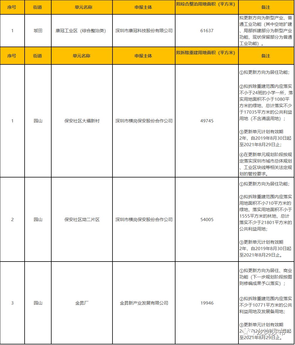 1、本表所列的城市更新單元須按照城市更新相關(guān)政策完成城市更新單元規(guī)劃編制及項目實施主體確認等工作后方可實施開發(fā)建設(shè)。