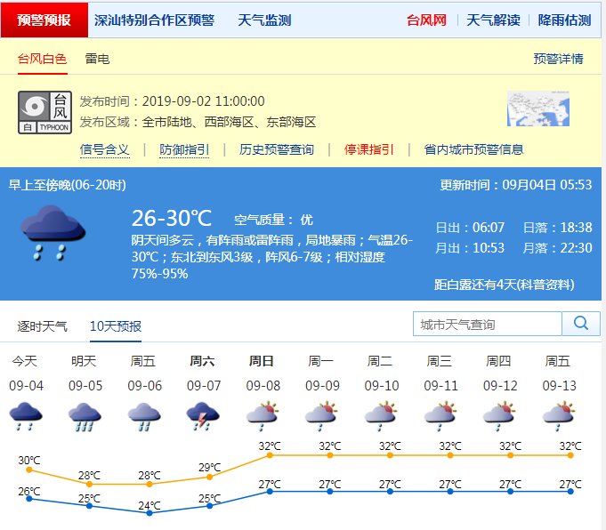 見(jiàn)圳客戶端.深圳新聞網(wǎng)2019年9月4日訊 據(jù)深圳市氣象臺(tái)消息,臺(tái)風(fēng)“劍魚(yú)”3日17時(shí)減弱為熱帶低壓,目前其風(fēng)力進(jìn)一步減弱,已很難確定其環(huán)流中心,中央臺(tái)4日02時(shí)對(duì)其停止編號(hào)。預(yù)計(jì)本周深圳多降雨,深圳(含深汕)4-5日有雷陣雨,局部暴雨,沿海和海區(qū)最大陣風(fēng)6-7級(jí)。