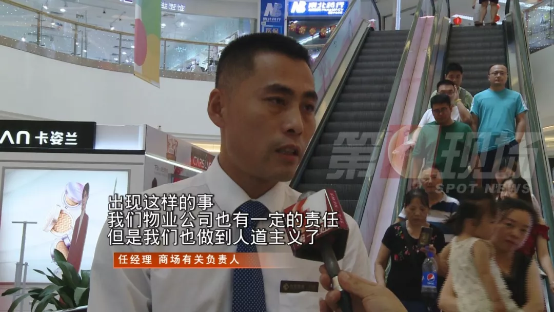 但商場負(fù)責(zé)人介紹,監(jiān)控顯示:事故發(fā)生大約10秒鐘左右,保安就及時(shí)趕到了現(xiàn)場。