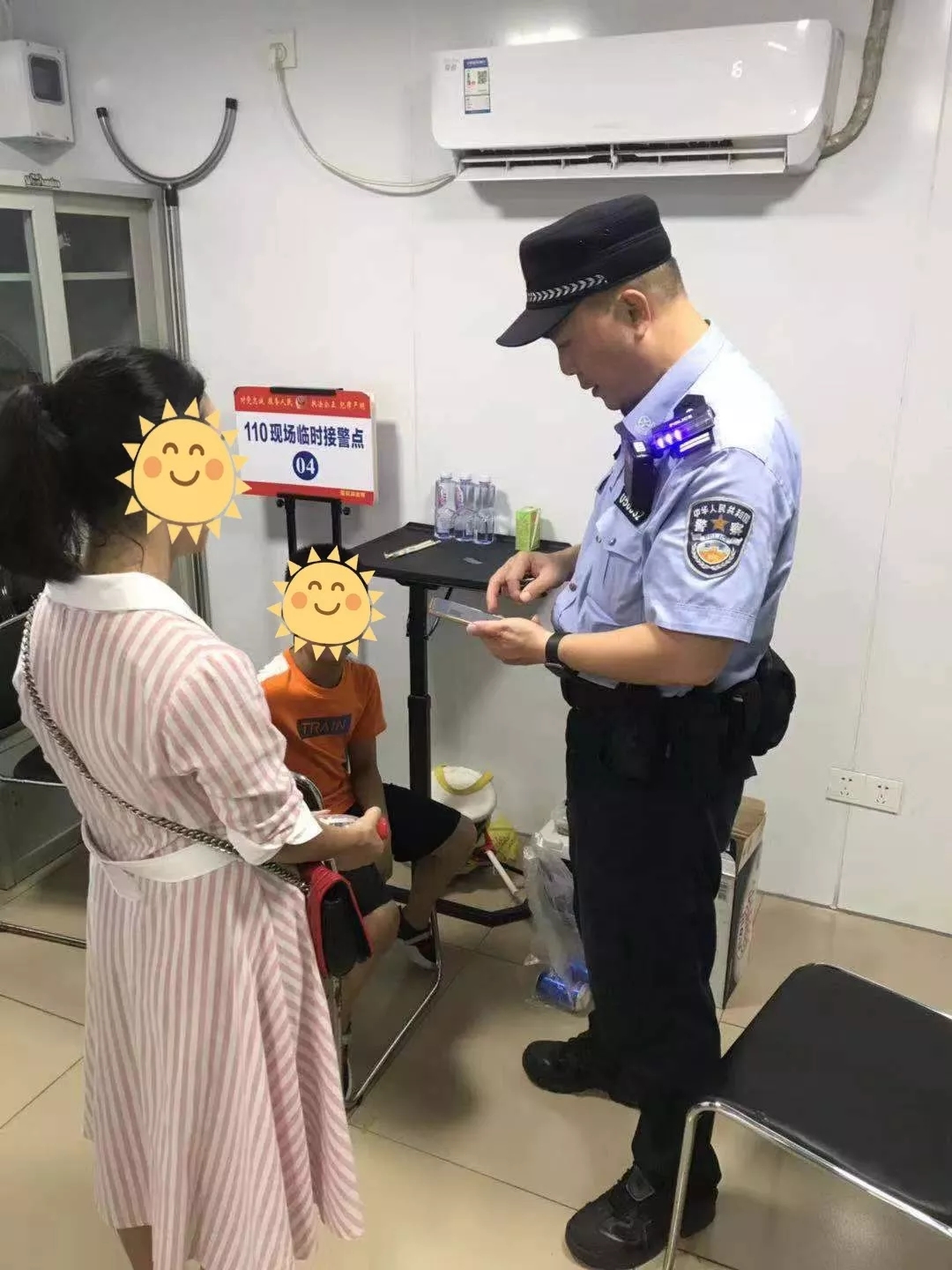 機動訓練大隊民警及時勸慰受騙群眾并幫助其回家,四中隊幫助走失小孩找到家人