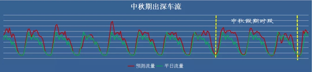 根據(jù)近三年中秋假期前夕的交通流量,結(jié)合今年深圳市道路車輛通行情況,深圳交警預(yù)計(jì),“中秋”假期期間(假期前一日12時(shí)至假期最后一日12時(shí)),出入深車輛數(shù)均將超過150萬輛次。