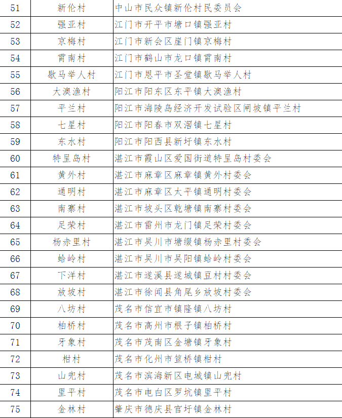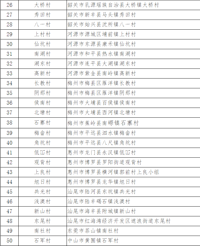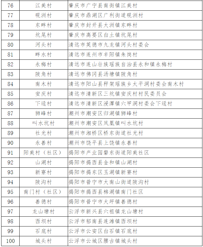 晶報2019年9月20日訊 據(jù)廣東省文化和旅游廳官方微信號消息,根據(jù)廣東省文化和旅游特色村認定工作的有關(guān)要求,經(jīng)審核,現(xiàn)將各市認定并推薦的擬公布為“廣東省文化和旅游特色村”100個村名單予以公示。