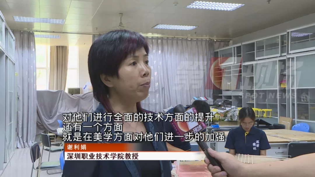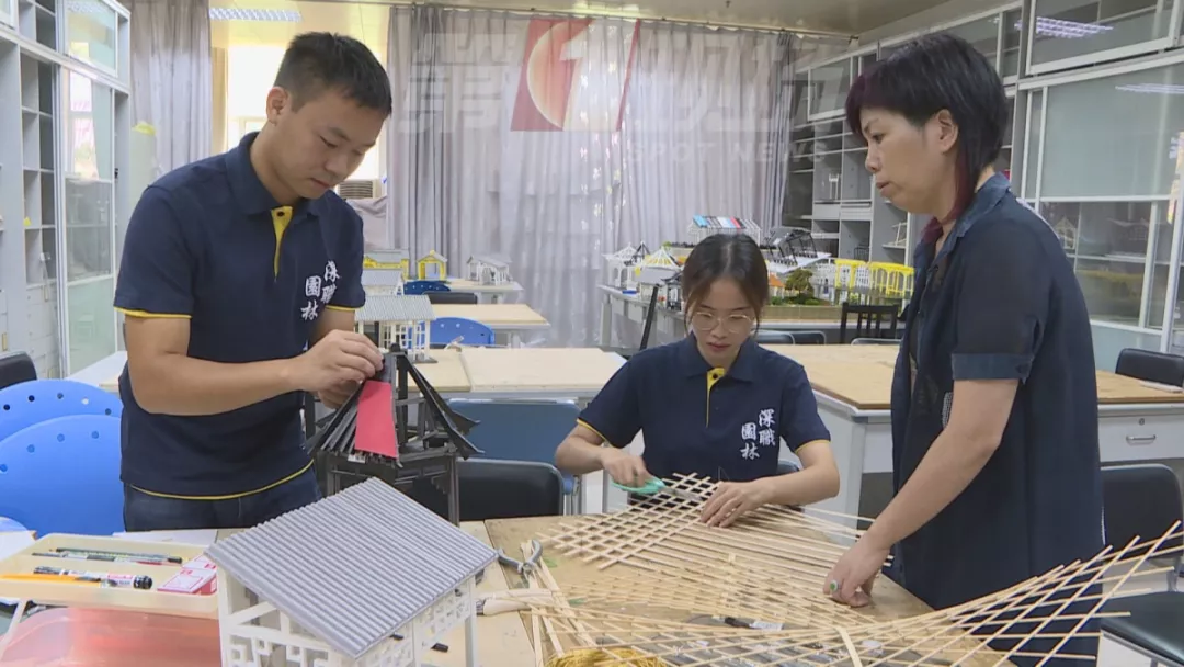 20號中午,在深圳職業(yè)技術(shù)學院的培訓室,謝老師正在指導學生制作園林建筑的模型。這門技術(shù)不僅需要手巧,還要有藝術(shù)上的靈感和創(chuàng)意。