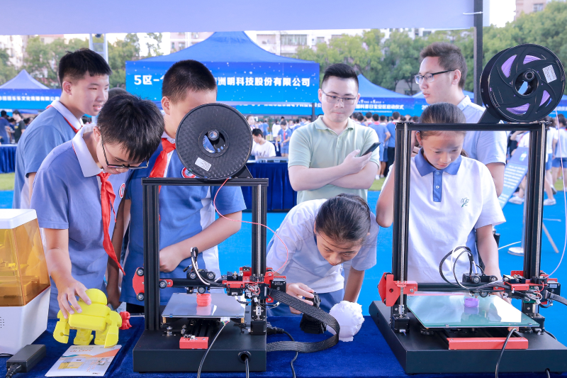 據(jù)了解,“禮贊共和國(guó),智慧新生活”是今年全國(guó)科普日的主題。本次全國(guó)科普日寶安區(qū)活動(dòng)分為航天科技裝備、太空知識(shí)長(zhǎng)廊、氫能轉(zhuǎn)化實(shí)驗(yàn)、 VRAR活動(dòng)體驗(yàn)、寶安區(qū)科普教育基地介紹等五個(gè)版塊,呈現(xiàn)出航天科技與太空知識(shí)相結(jié)合的科普盛宴。除此之外,深圳市洲明科技股份有限公司帶來(lái)了智慧路燈及節(jié)能系統(tǒng)的介紹;深圳市愛(ài)能特科技有限公司的3D打印讓學(xué)生們大開(kāi)眼界,想像的物品只要設(shè)計(jì)出來(lái)就能打??;韓端科技 (深圳)有限公司帶來(lái)的機(jī)器人舞蹈揮舞著國(guó)旗震撼了全場(chǎng)……操場(chǎng)上、實(shí)驗(yàn)室里處處散發(fā)出著科技的魅力。