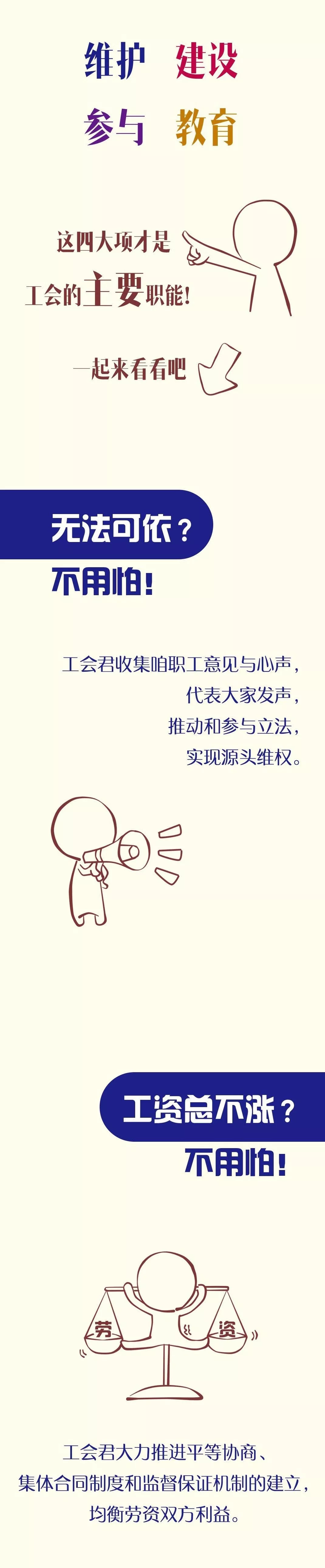 深圳市總工會堅持中國共產(chǎn)黨的領(lǐng)導(dǎo),堅定不移地走中國特色社會主義工會發(fā)展道路。簡單來說,主要有維護(hù)、建設(shè)、參與、教育四大職能。維護(hù)職工朋友的合法權(quán)益、組織勞動競賽、幫助職工小伙伴提高科學(xué)文化素質(zhì)等等,職工朋友的維權(quán)、服務(wù)、教育、幫扶......都是工會的職能。
