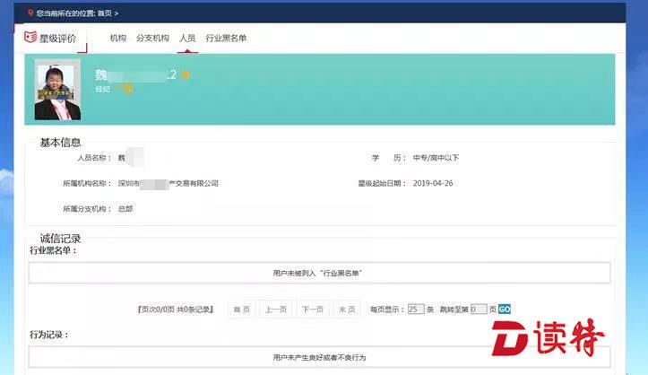 模塊中涉及到中介機(jī)構(gòu)和中介人員的星級(jí)評(píng)價(jià),來自深圳市房地產(chǎn)中介協(xié)會(huì)(以下簡稱“深房中協(xié)”)與各大中介機(jī)構(gòu)組成的專家委員的定期聯(lián)合評(píng)定。無論是中介人員還是中介機(jī)構(gòu),都需從一星經(jīng)數(shù)次評(píng)選提升至五星等級(jí),越高星級(jí)的人員與機(jī)構(gòu),意味著更少的投訴信息與更加優(yōu)良的誠信記錄。目前上線的模塊中,僅有大約10%的中介人員獲得了五星認(rèn)定。