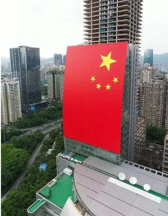 9月14日,一面巨幅國旗在深南大道上的廣電大廈樓宇立面上亮相,壯觀場面刷爆了深圳人的朋友圈。