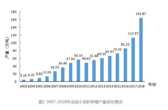 隨著生活水平的提高,人們對(duì)“食”提出了更高要求,色香味俱全的美食往往也更讓人難以抗拒?;疱仧拘↓埼r作為當(dāng)代青年人的“最?lèi)?ài)”,已獨(dú)得恩寵許多年,尤其是小龍蝦。每年夏季,是吃小龍蝦的旺季。據(jù)部分媒體不完全統(tǒng)計(jì),光南京一個(gè)城市每年的龍蝦消費(fèi)量都超萬(wàn)噸,而北上廣深蓉5個(gè)城市,小龍蝦門(mén)店數(shù)均超3000家。此外,據(jù)2019年中國(guó)小龍蝦產(chǎn)業(yè)發(fā)展報(bào)告顯示,小龍蝦產(chǎn)業(yè)總產(chǎn)值達(dá)3690億元,占據(jù)了第三產(chǎn)業(yè)產(chǎn)值的主導(dǎo)地位。這種巨大的消費(fèi)力帶動(dòng)了小龍蝦養(yǎng)殖業(yè)的發(fā)展,到2018年,全國(guó)小龍蝦養(yǎng)殖產(chǎn)量已超163萬(wàn)噸。
