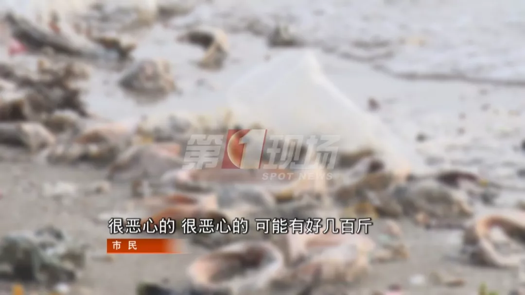 在寶安區(qū)金灣大道旁的休閑海灘,緊挨著西灣濱海公園,風景不錯。不過,沿著沙灘南行300米,卻出現(xiàn)和景色完全不符,十分倒胃口的場景,沙灘上遍布著成片的豬耳朵。