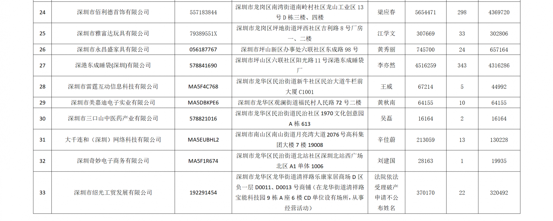 記者發(fā)現(xiàn),在此次被曝光的33家企業(yè)中,被墊付欠薪數(shù)額最大的是位于龍崗區(qū)南灣街道南嶺村社區(qū)龍山工業(yè)區(qū)的深圳市佰利德首飾有限公司,拖欠員工工資約565.45萬(wàn)元,市欠薪保障基金墊付298名員工工資436.97萬(wàn)元;其次是位于坪山區(qū)六聯(lián)社區(qū)的深港東成睡袋(深圳)有限公司,拖欠員工工資約451.63萬(wàn)元,市欠薪保障基金墊付343名員工工資約431.63萬(wàn)元。