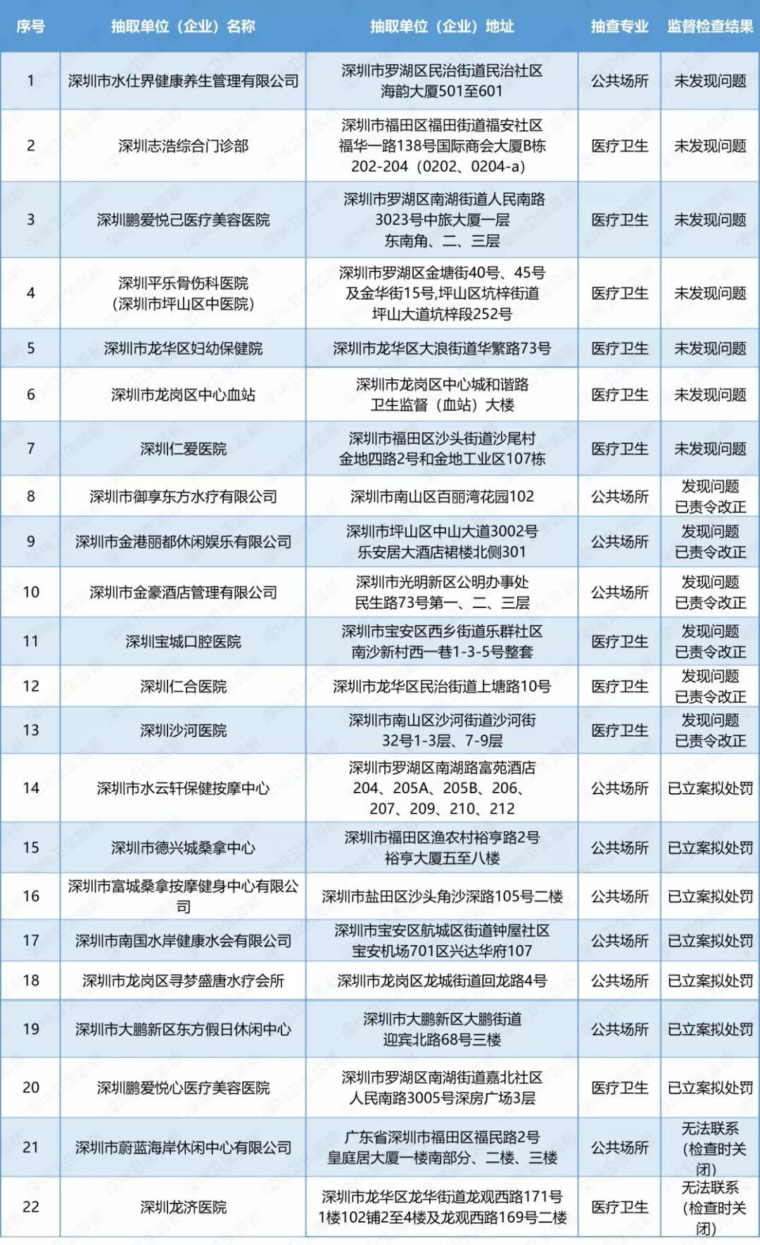 此次抽查的22家單位▼
