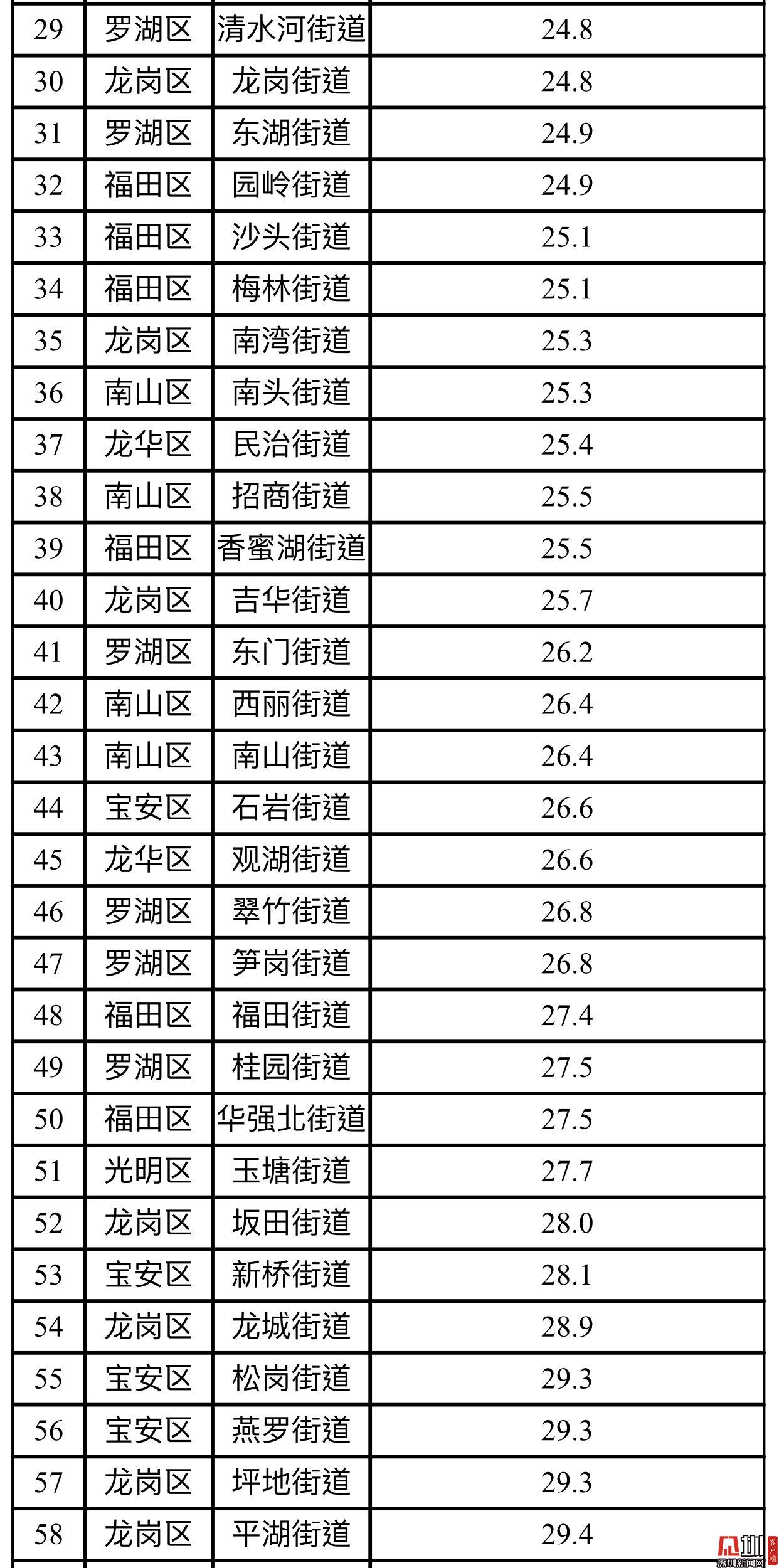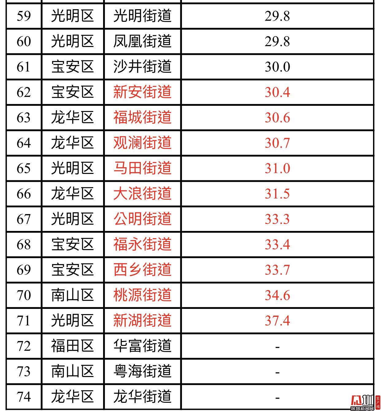 見圳客戶端·深圳新聞網(wǎng)2019年10月22日訊(見圳客戶端、深圳新聞網(wǎng)記者 陳婕)10月22日,記者從深圳市生態(tài)環(huán)境局了解到,2019年9月,全市74個(gè)街道PM2.5濃度在17.7-37.4微克/立方米之間,均值為26.1微克/立方米。排名前十的是海山、南澳、梅沙、葵涌、鹽田、馬巒、沙頭角、坪山、坑梓和石井等街道,排名倒數(shù)前十的為新湖、桃源、西鄉(xiāng)、福永、公明、大浪、馬田、觀瀾、福城和新安等街道。