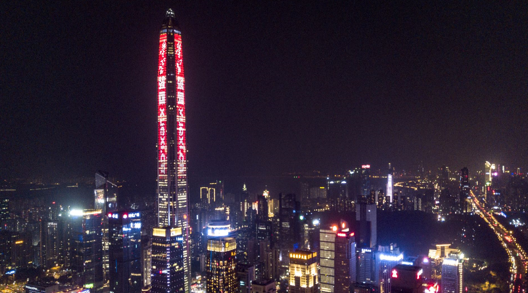 20日晚,京基100大廈和平安金融中心為“學(xué)習(xí)強(qiáng)國”“代言”