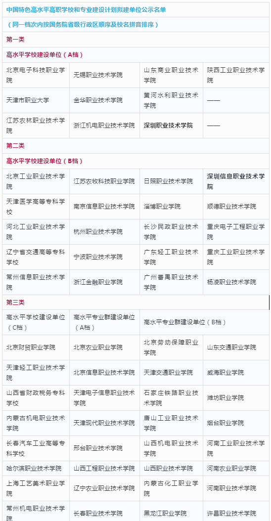 深圳市委市政府召開全市教育大會,發(fā)布《關(guān)于推進教育高質(zhì)量發(fā)展的意見》。《意見》提出打造世界一流職業(yè)教育高地。支持深圳職業(yè)技術(shù)學(xué)院和深圳信息職業(yè)技術(shù)學(xué)院積極申報國家職業(yè)院?!半p高”計劃,努力建成中國特色世界水平的高職院校。