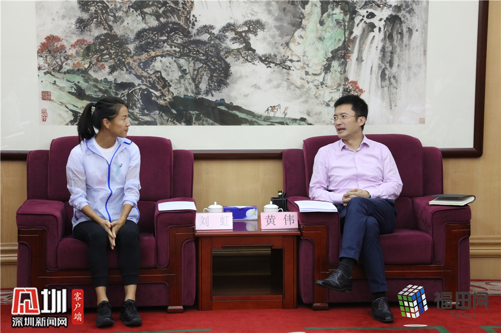 福田區(qū)區(qū)長黃偉等領(lǐng)導參加會見,會上給劉虹頒發(fā)了50萬元獎勵金,以表彰她頑強拼搏的精神和對福田體育事業(yè)做出的貢獻。