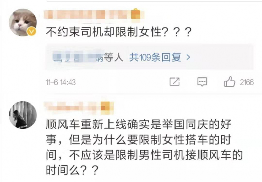 相較于其他安全措施,20:00后不接女性訂單的規(guī)定,引發(fā)的爭(zhēng)議尤其大。很多人覺得,這是對(duì)女性的冒犯和隱性歧視。因?yàn)橛星败囍b、怕出事后要擔(dān)責(zé),干脆讓女性無(wú)法方便地打車,屬于典型的因噎廢食。