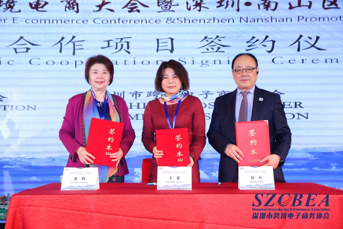會(huì)上,深圳市健康產(chǎn)業(yè)發(fā)展促進(jìn)會(huì)會(huì)長(zhǎng)黃鶴女士、深圳市跨境電子商務(wù)協(xié)會(huì)執(zhí)行會(huì)長(zhǎng)王馨女士、加拿大凱克企業(yè)集團(tuán)董事長(zhǎng)楊紅先生上臺(tái)進(jìn)行了戰(zhàn)略合作簽約儀式。