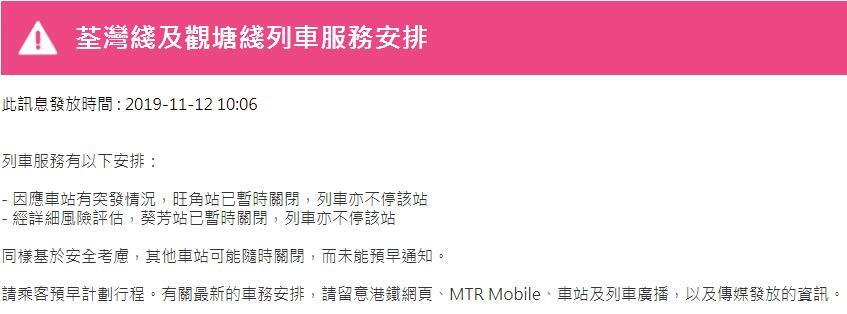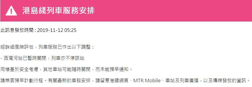 港鐵官網(wǎng)今早陸續(xù)發(fā)布其它線路列車(chē)服務(wù)調(diào)整信息,截至目前各線路情況如下: