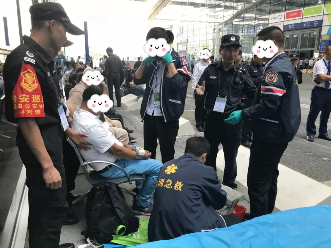 機(jī)動(dòng)訓(xùn)練大隊(duì)三中隊(duì)執(zhí)勤分隊(duì)長(zhǎng)郭正在執(zhí)勤時(shí),發(fā)現(xiàn)一名參展商頭暈不適,第一時(shí)間通知場(chǎng)館醫(yī)療人員前往救助,隨后將該名參展商送往醫(yī)院,經(jīng)醫(yī)生救治后該名參展商已無大礙。