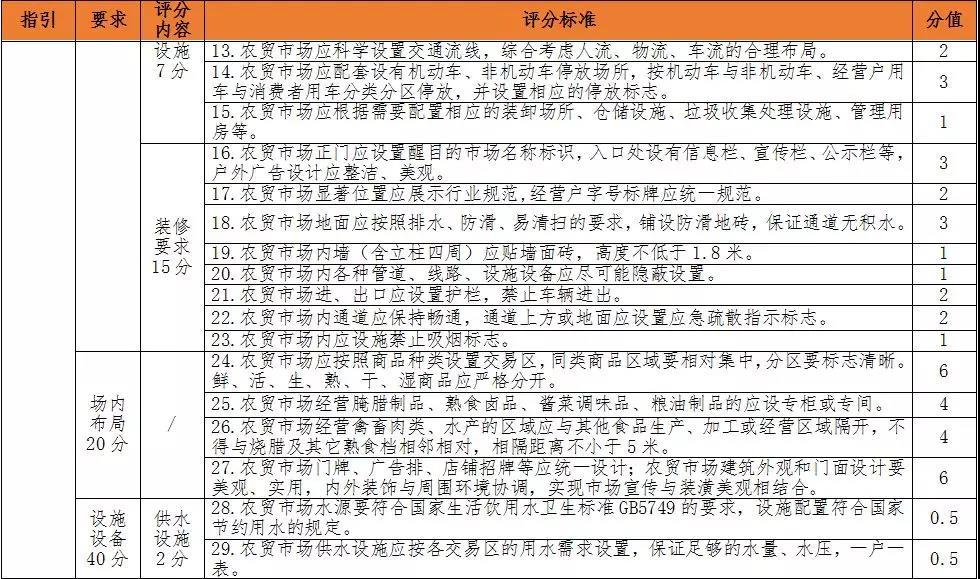 你想知道自家附近的農(nóng)貿(mào)市場達標情況嗎?對照上面評審標準看看吧!