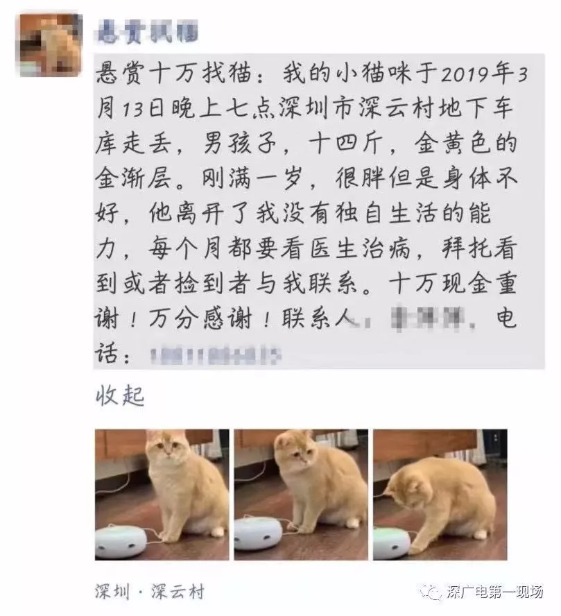 “十萬重金尋貓”的啟事。