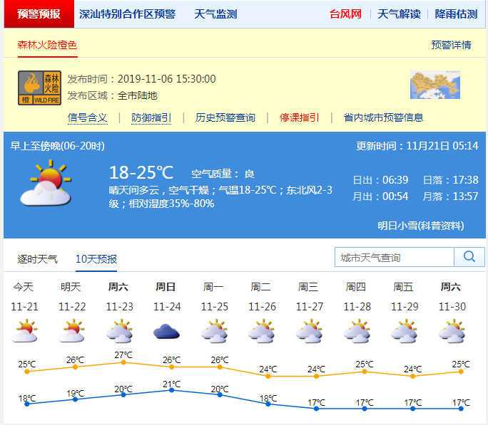 見圳客戶端·深圳新聞網(wǎng)2019年11月21日訊 19日深圳已成功入秋了,但冷空氣走后,氣溫還是出現(xiàn)了回升,21日氣溫將在18-25℃。