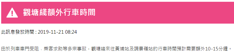 整體行車時(shí)間會較平日長16-22分鐘,班次也會較正常疏落。預(yù)計(jì)進(jìn)入車站及在站臺候車的時(shí)間會較長,出行需預(yù)留充裕的時(shí)間。