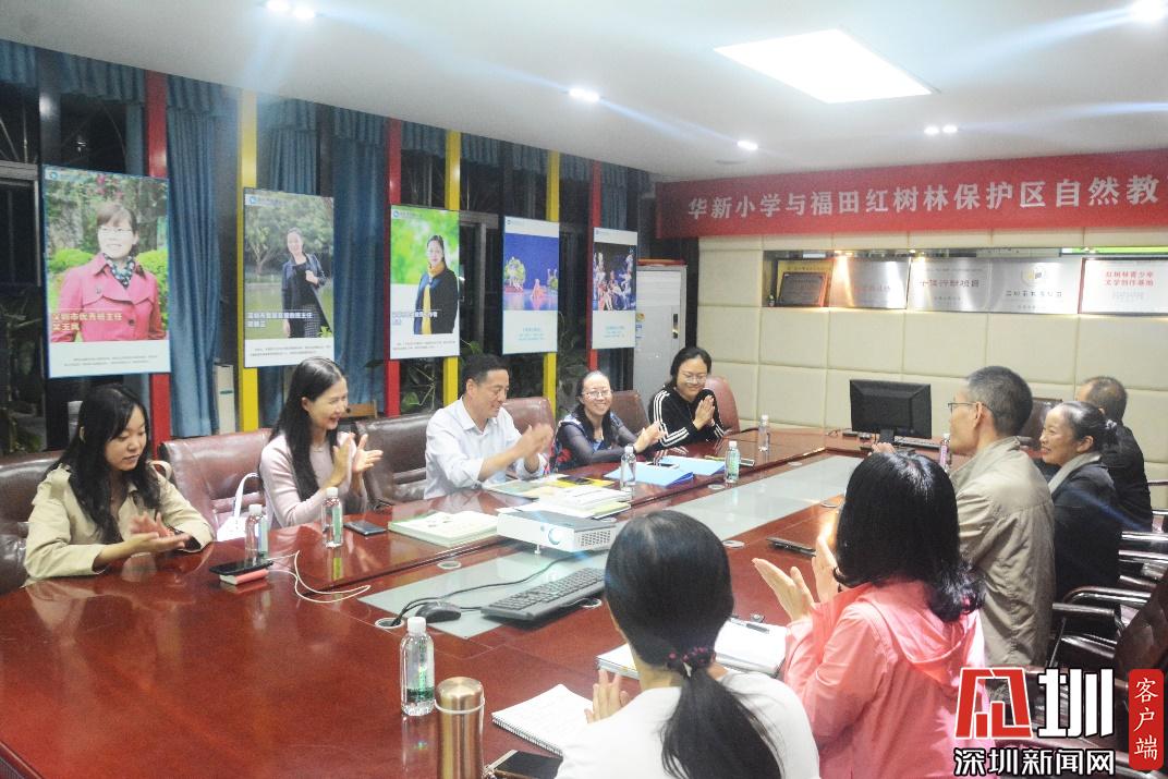 見圳客戶端·深圳新聞網(wǎng)2019年11月22日訊 (見圳客戶端、深圳新聞網(wǎng)記者 曹園芳 通訊員 鄧麗云)11月21日,華新小學(xué)與福田紅樹林保護(hù)區(qū)自然教育合作簽約儀式在華新小學(xué)二樓會議室舉行。與會的有華新小學(xué)張偉校長、教導(dǎo)處潘春林主任、課程部鄧麗云主任、美術(shù)科組長胡美莉老師、深圳市觀鳥協(xié)會會員陳苗老師,福田紅樹林保護(hù)區(qū)管理局王孟琪副局長、保護(hù)區(qū)管理局宣教組兩位負(fù)責(zé)人胡柳柳與楊瓊、保護(hù)區(qū)管理局兩位宣教員石俊慧與陳佳熒。鄧麗云主任和楊瓊博士分別介紹了雙方的課程特色與實(shí)踐方案。