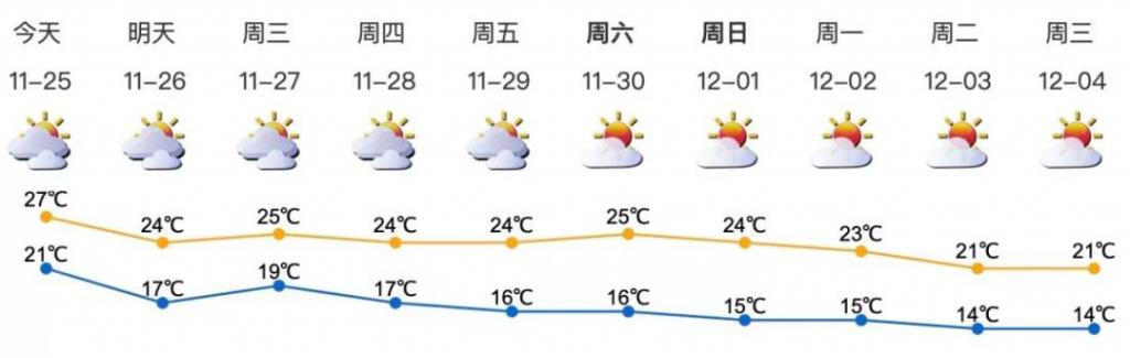 11月28-30日冷空氣持續(xù)補(bǔ)充影響,空氣持續(xù)干燥,氣溫逐日下降。
