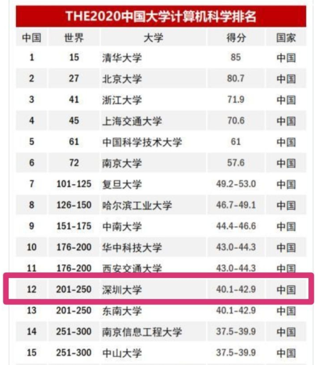 深圳商報2019年11月25日訊 近日,《泰晤士報高等教育》發(fā)布了世界大學學科的最新排名,對部分熱門專業(yè)進行了排名更新。根據計算機科學專業(yè)最新排名顯示,深圳大學計算機科學學科位列中國內地高校第12,較上一年度的泰晤士學科排名上升1位;世界排名從去年的301-400位進階至201-250位之間。