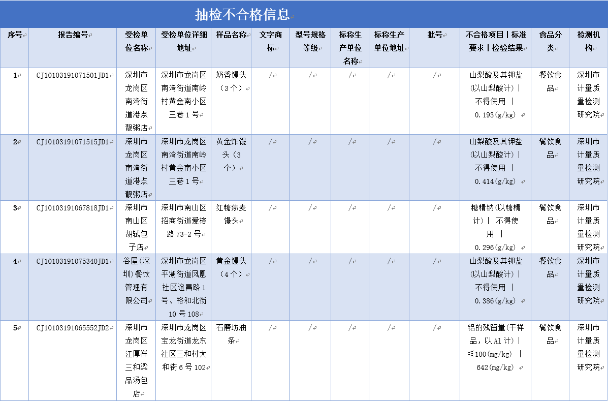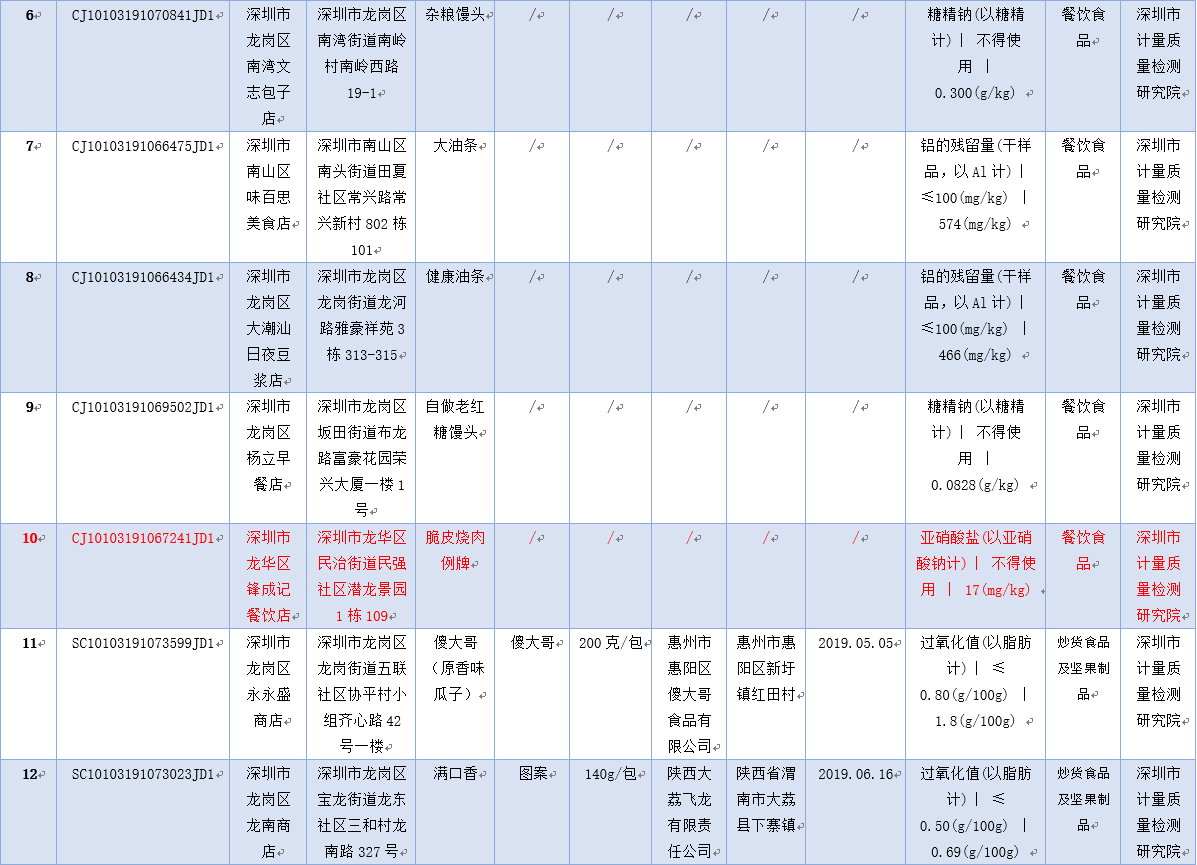 見圳客戶端·深圳新聞網(wǎng)2019年12月2日訊 為保障深圳食品消費安全,深圳市市場監(jiān)督管理局于2019年8-9月組織對生產(chǎn)、流通、餐飲環(huán)節(jié)的食品開展了專項抽樣檢驗工作。