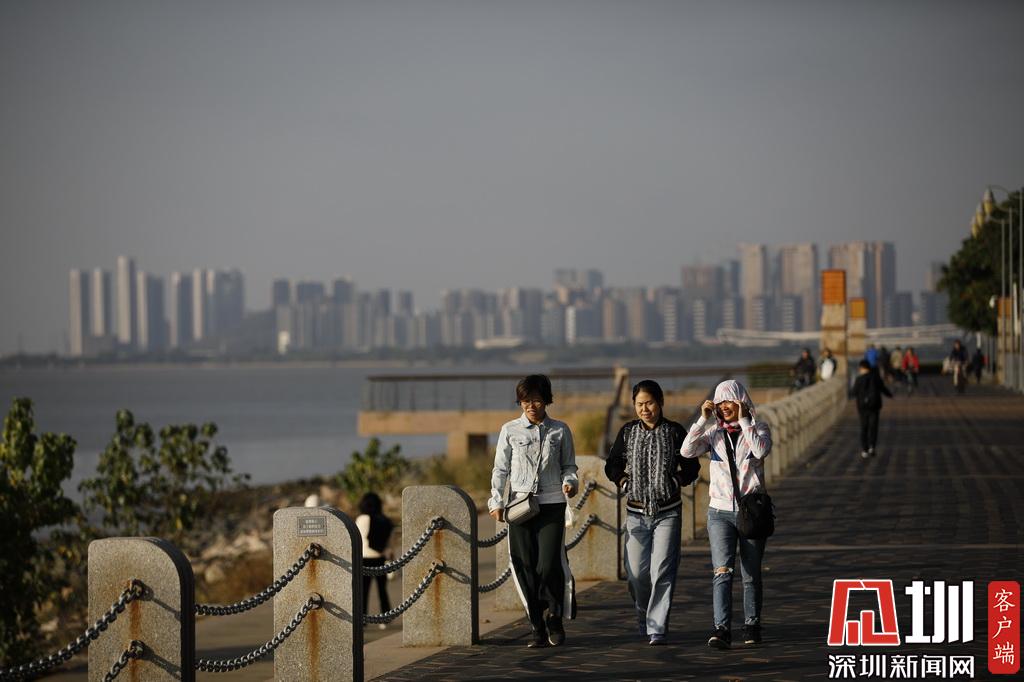 深圳南山區(qū),出行的小朋友穿上冬裝御寒。