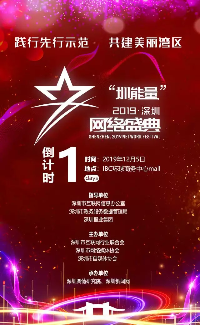 今年,第二屆深圳網(wǎng)絡(luò)盛典將以“踐行先行示范共建美麗灣區(qū)”為主題,開(kāi)啟一系列網(wǎng)絡(luò)年度盤點(diǎn)和評(píng)選活動(dòng)。