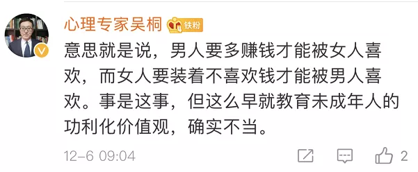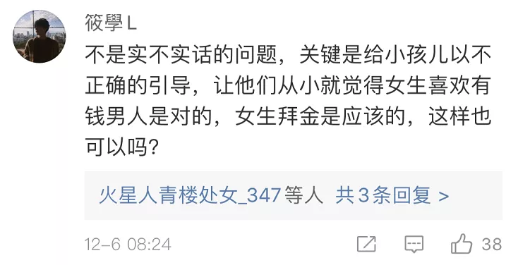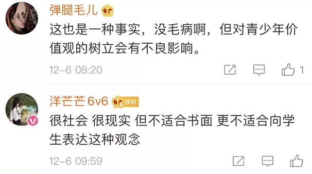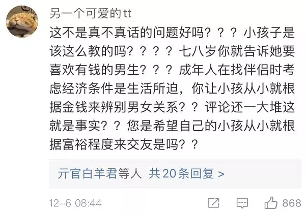 也有網(wǎng)友覺得,出發(fā)點是好的,內(nèi)容在成人看來或許有其“合理性”,但不應(yīng)該拿來這樣教孩子。